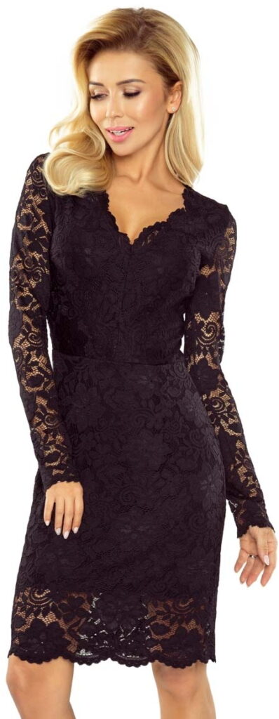 Jasnoszara Sukienka Wizytowa z Koronką na Rękawie