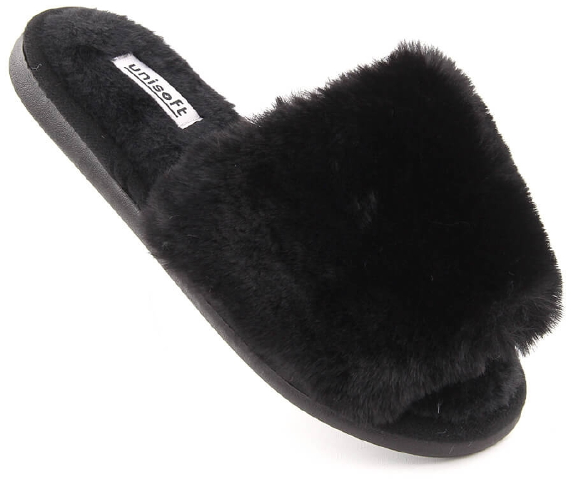 Kapcie domowe damskie z futerkiem czarne UNISOFT 6644