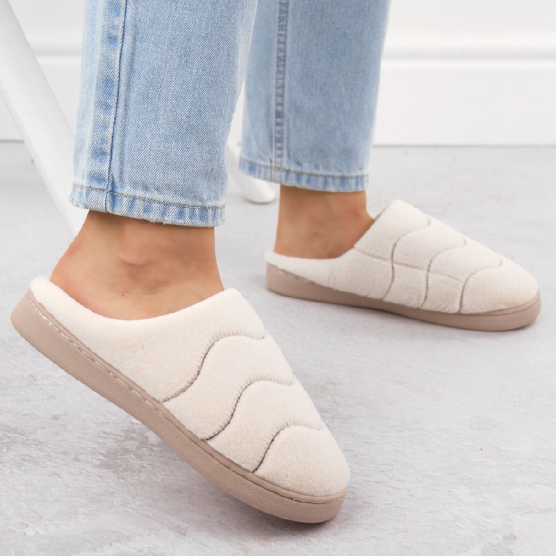Kapcie domowe damskie futerkowe beżowe UNISOFT 6622