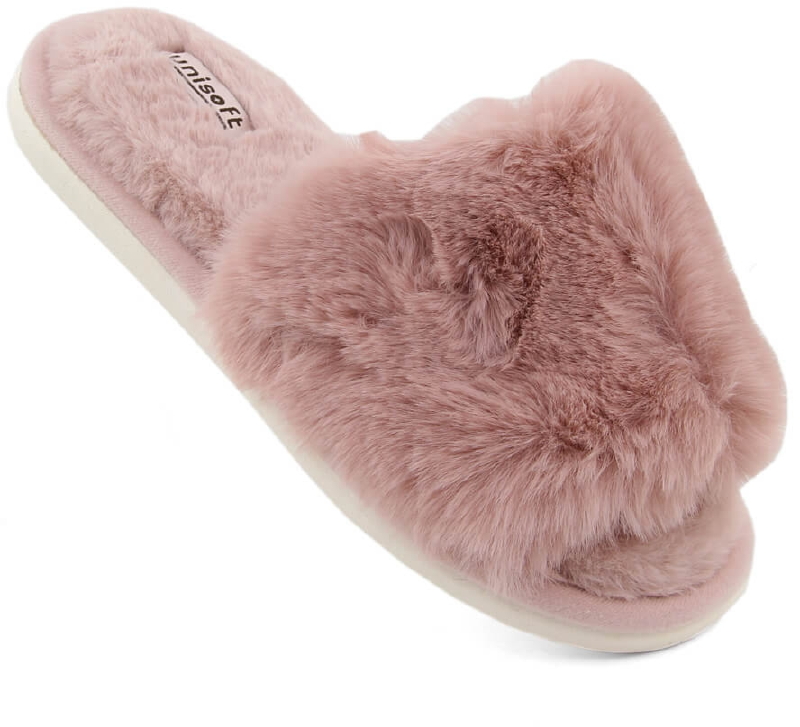 Kapcie domowe damskie z futerkiem pudrowy róż UNISOFT 6644