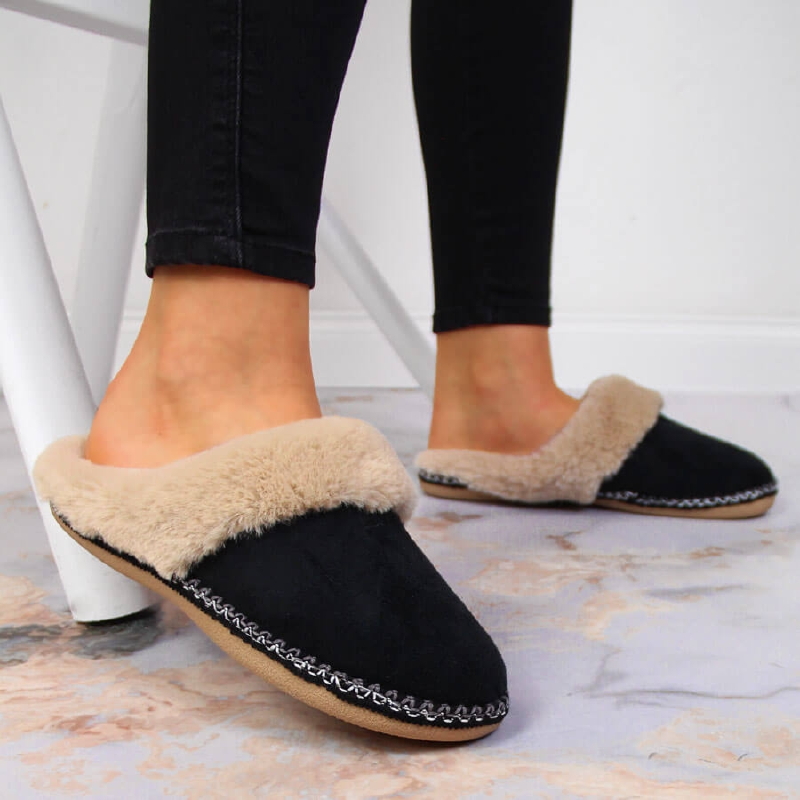 Kapcie damskie domowe z futerkiem czarne Cloxx