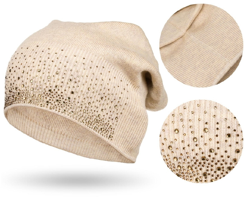 Czapka z kryształkami beżowa Peterson PTN HAT-01