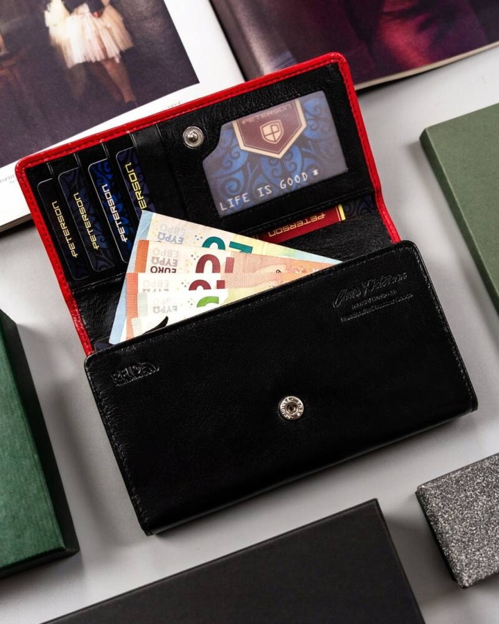 Portfel skórzany Peterson PTN KA-19 czarno-czerwony