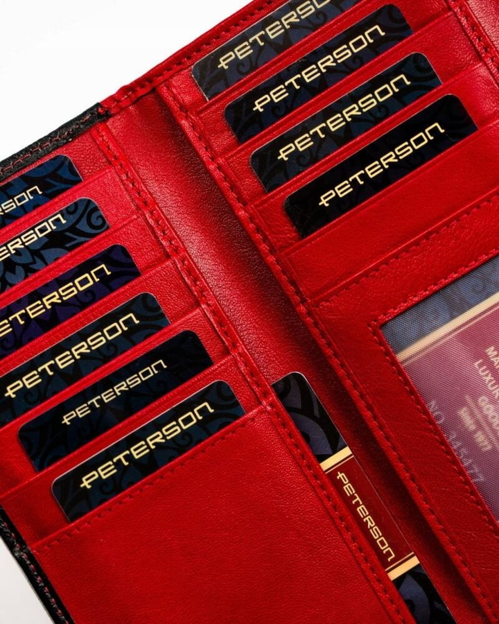 Portfel skórzany Peterson PTN KA-24 czerwony z czarnym obszyciem