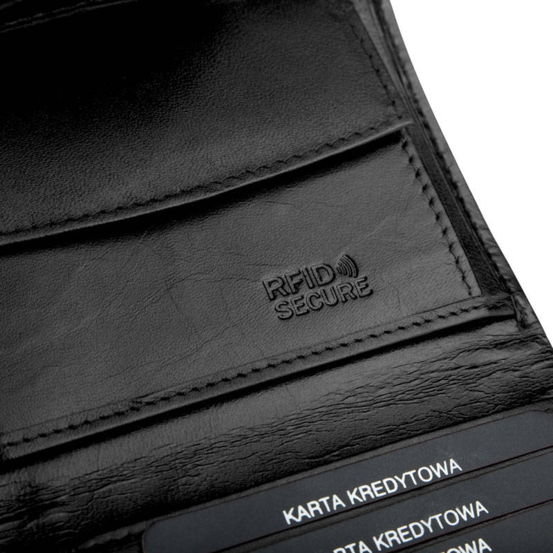 Portfel czarny RFID Ronaldo skórzany N104L-VT BLACK-RED