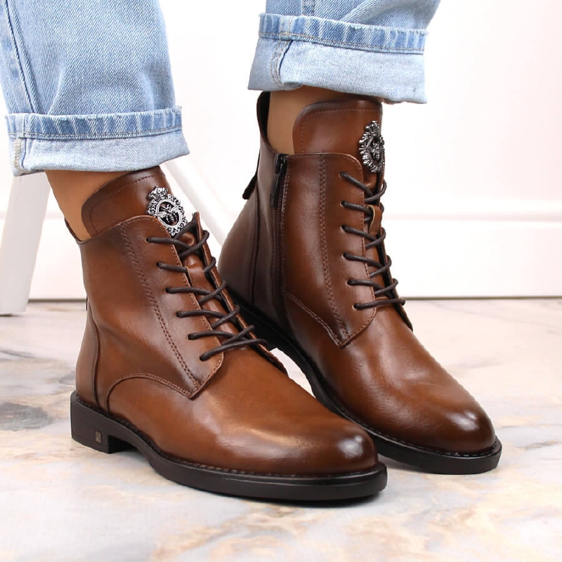 Botki damskie sznurowane i na zamek brązowe Potocki SZ12179