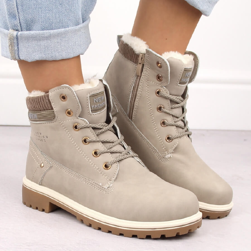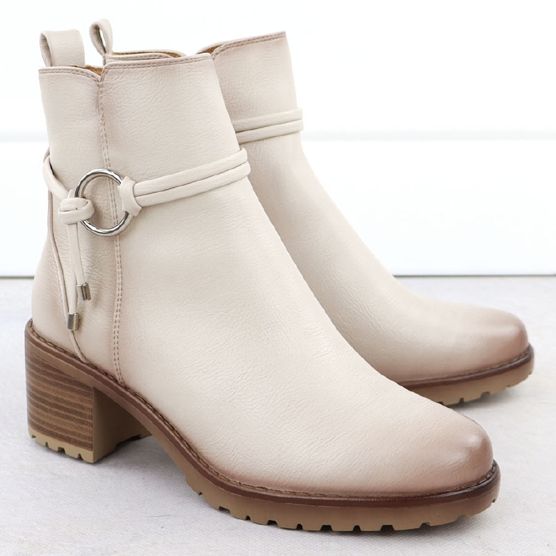 Botki damskie ocieplane na klocku beżowe Potocki SZ12527