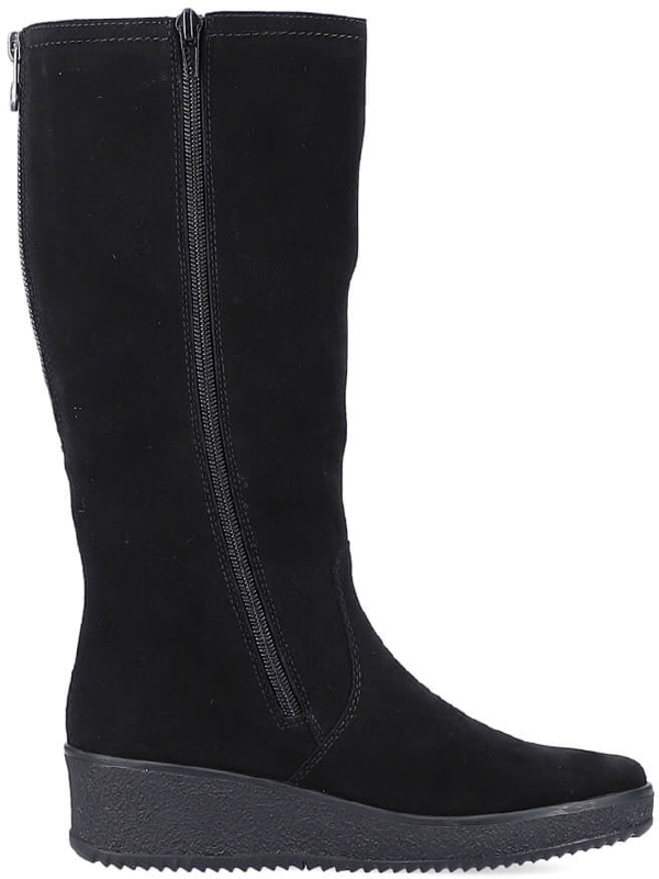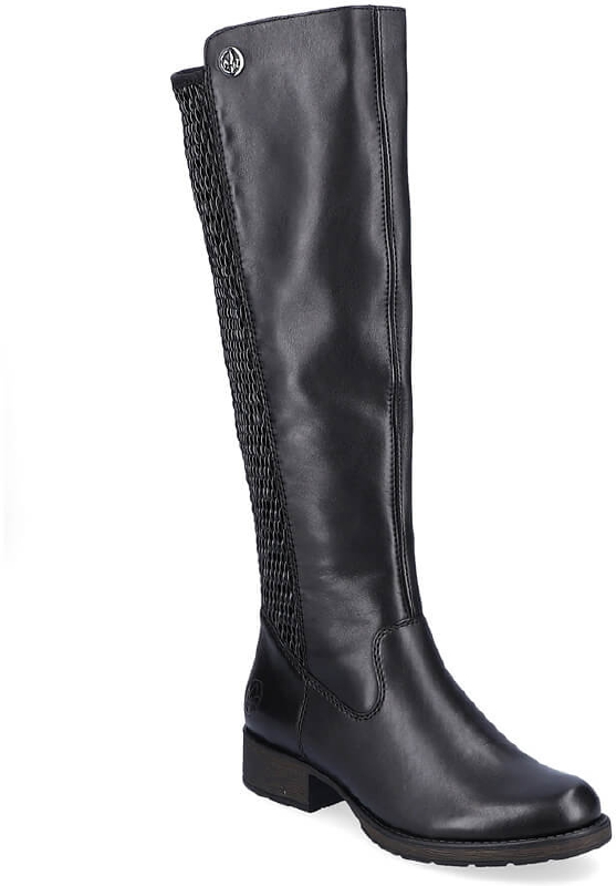 Skórzane kozaki damskie z elastyczną gumą ocieplane czarne Rieker Z9591-00