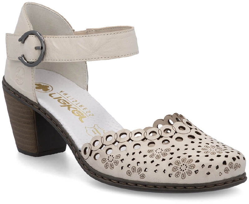 Skórzane sandały damskie na słupku beżowe Rieker 40902-60