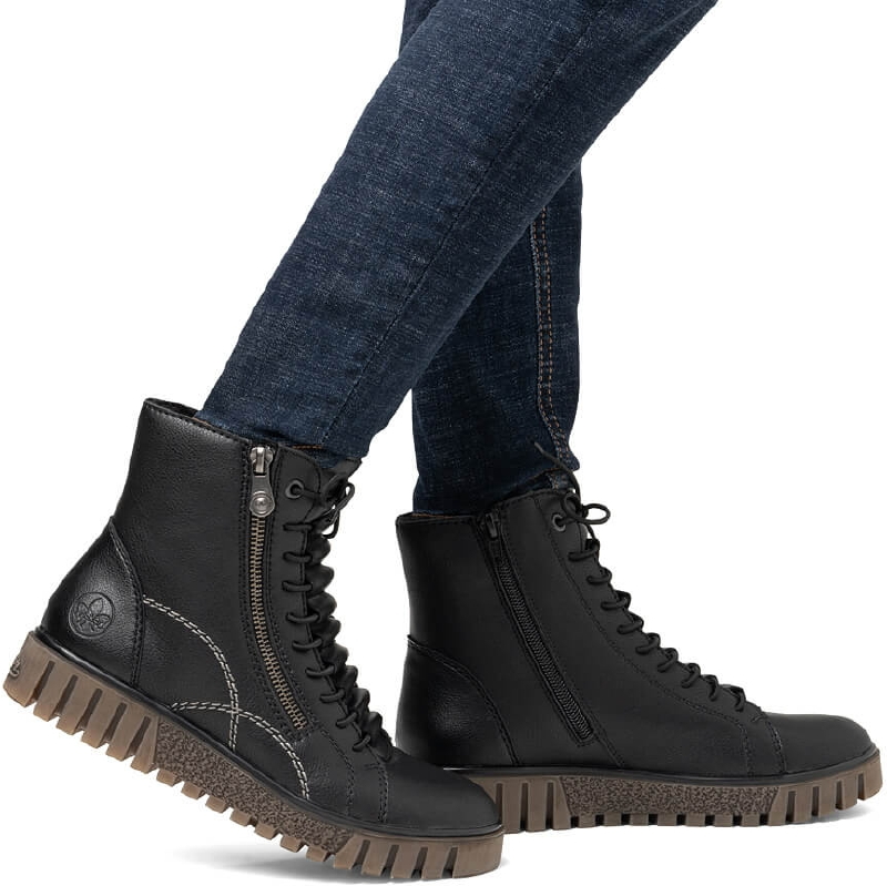 Skórzane botki damskie na platformie czarne Rieker Y3410-00
