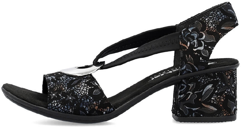 Komfortowe sandały damskie na obcasie z gumką czarne Rieker 64683-91
