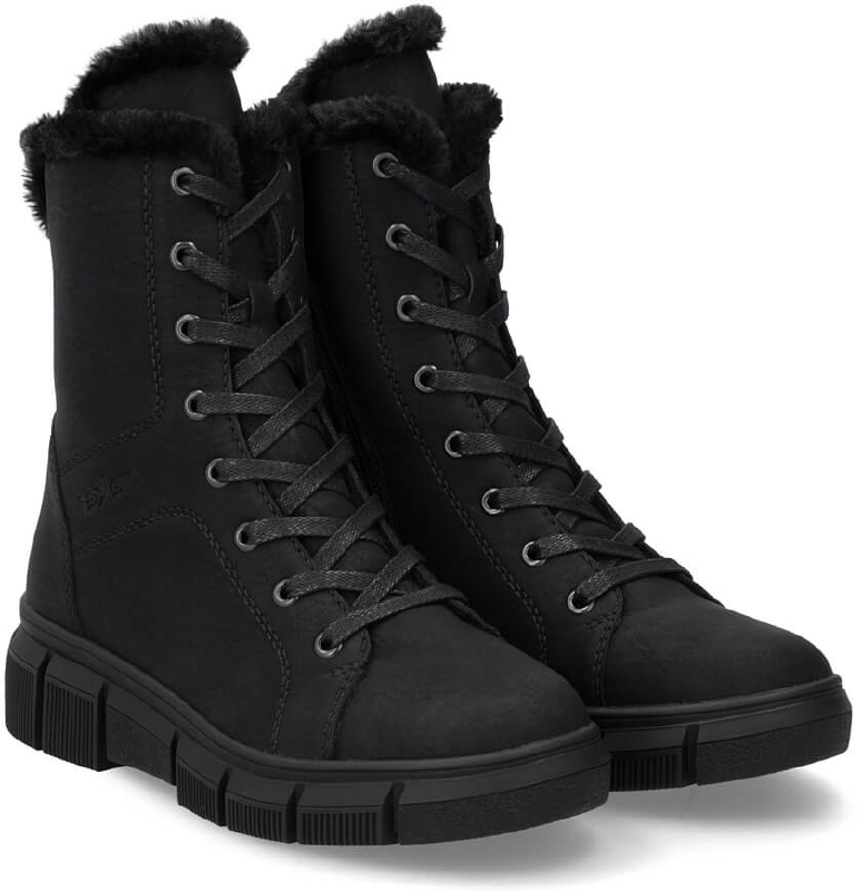 Workery damskie ocieplane z futerkiem czarne Rieker 72625-00