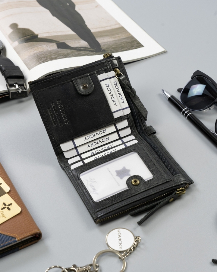 Portfel czarny retro Rovicky N1226-RHP-5432 BLACK