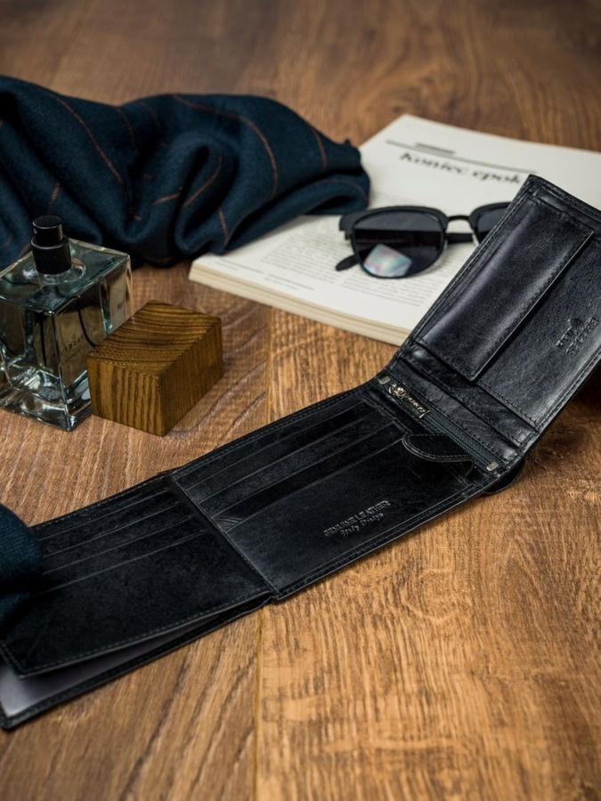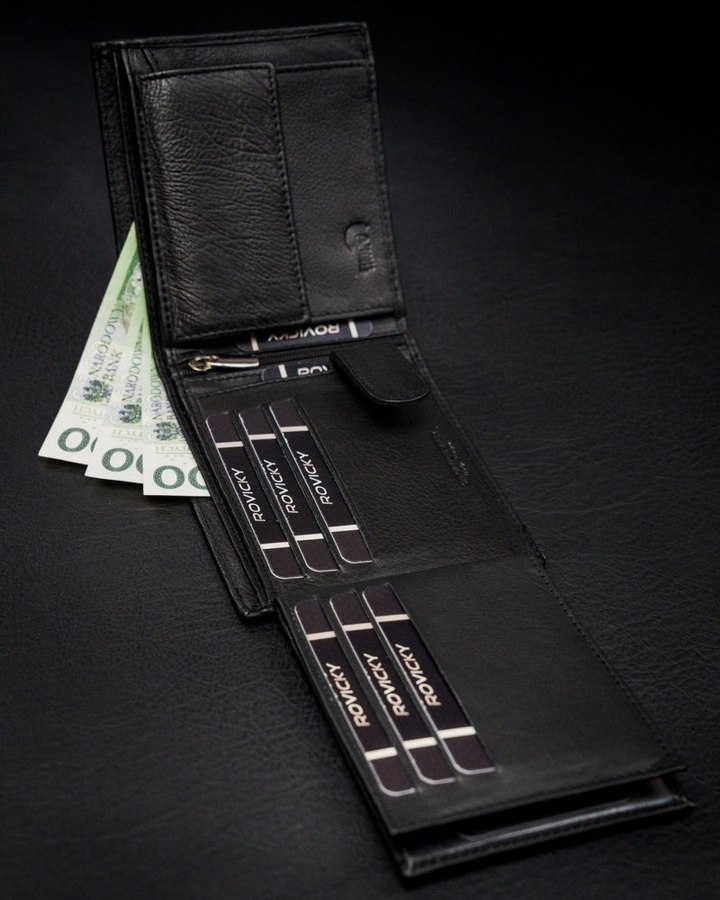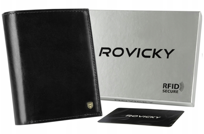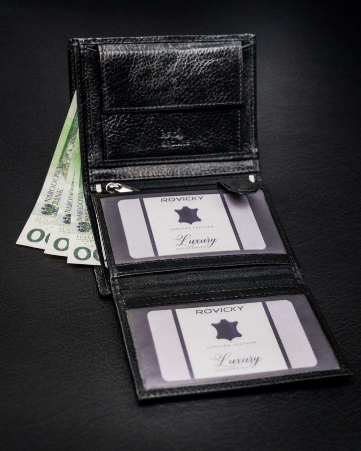 Skórzany portfel męski czarny Rovicky N62-RVT BLACK