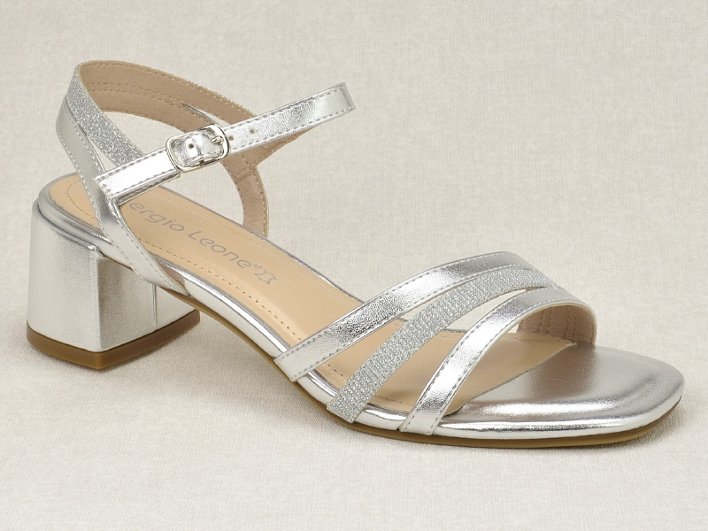 Jasno szare sandały damskie na obcasie Sergio Leone SK886