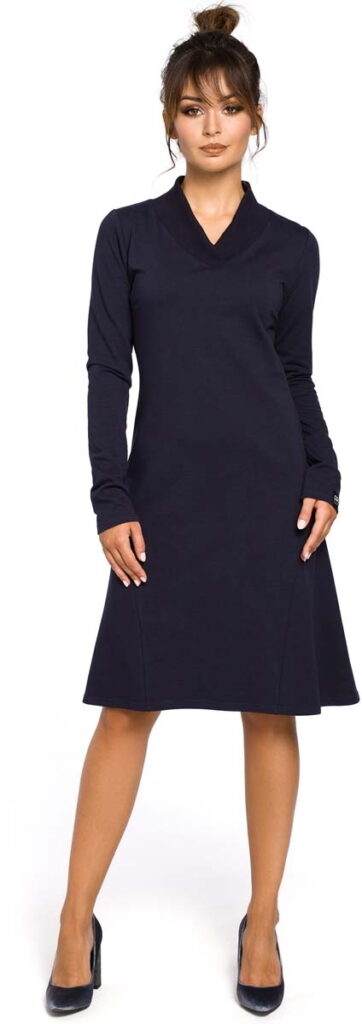 Beżowa Sukienka Dzianinowa z Długim Rękawem