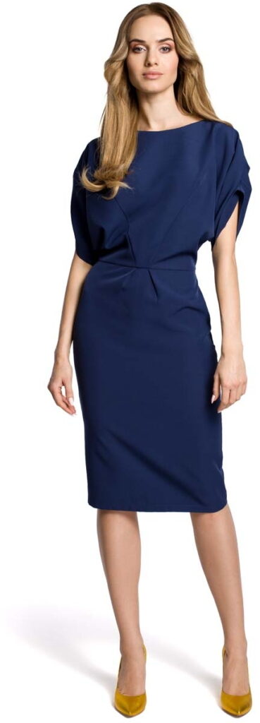Granatowa Koktajlowa Sukienka Typu Kimono z Zakładkami