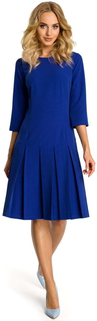 Lazurowa Wizytowa Sukienka z Wiązanym Paskiem