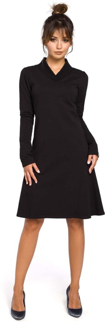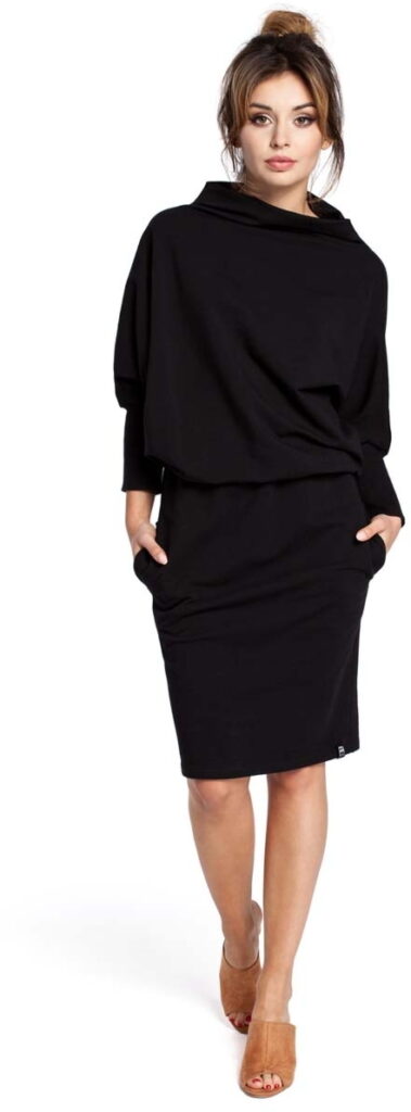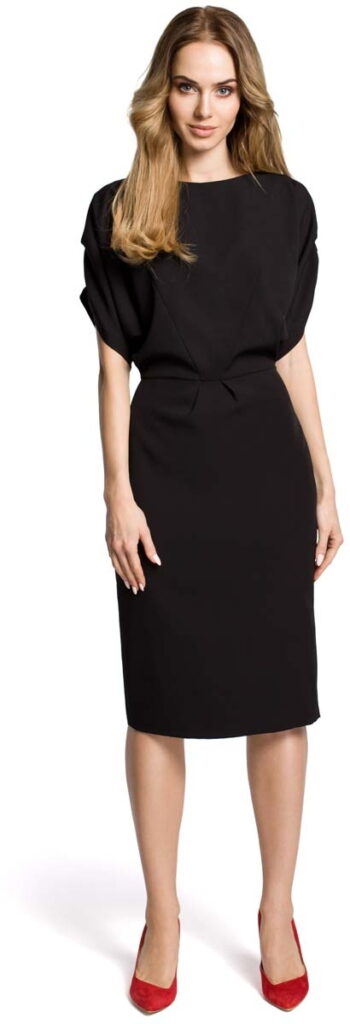 Czarna Koktajlowa Sukienka Typu Kimono z Zakładkami