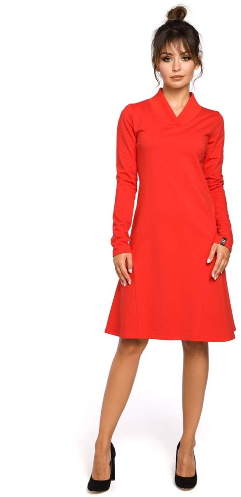 Czerwona Sukienka Elegancka Rozkloszowana na Szerokich Ramiączkach