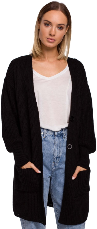 Czarny Klasyczny Dłuższy Kardigan bez Zapięcia