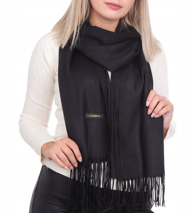 Jednokolorowy Szalik damski duży Cashmere frędzle SZA-01 kolor czarny