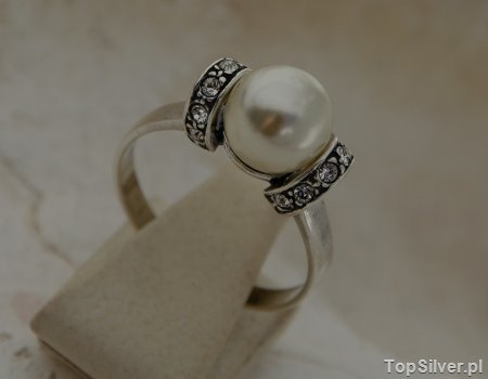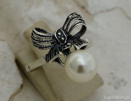 KOKARDA – srebrny pierścionek z perłą