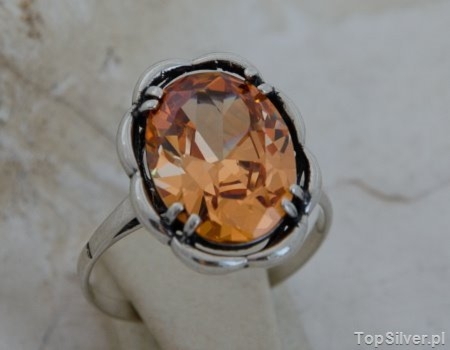 MASCOLO – srebrny pierścionek z koralem i kryształami