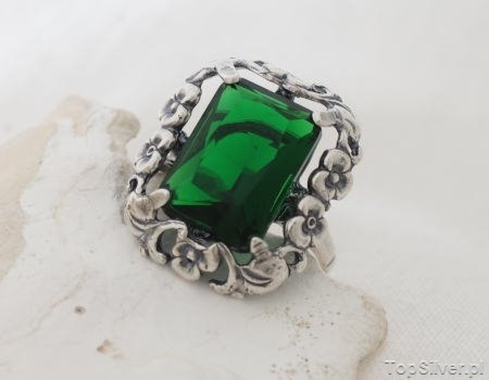 GUADELUPE – srebrny pierścionek ze szmaragdem