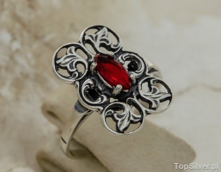 CATALINA – srebrny pierścionek z rubinem