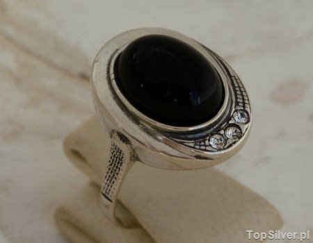 DUOMO – srebrny pierścionek onyks z kryształami