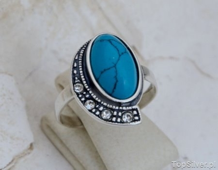 TEMPOLI – srebrny pierścionek z turkusem i kryształami