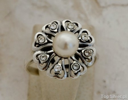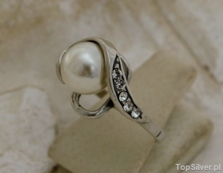 EMPIRE – srebrny pierścionek z perłą i kryształkami Svarovskiego