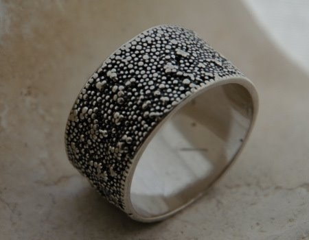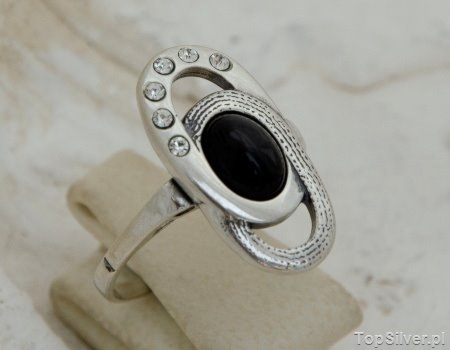 ALLESSI – srebrny pierścionek z onyksem i kryształkami