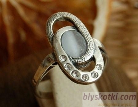 VESPA – srebrny pierścionek z kocim okiem i kryształkami