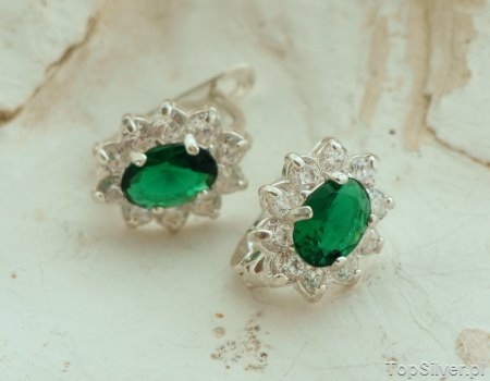 TOKYO – srebrne kolczyki ze szmaragdem i cyrkonia