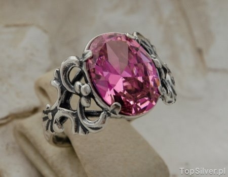 JUNAYA – srebrny pierścionek z bursztynem i kryształkami