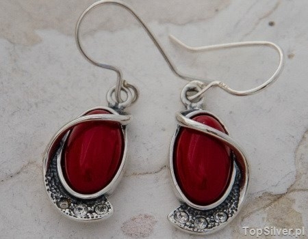 MURANO – srebrne kolczyki z koralem i kryształkami