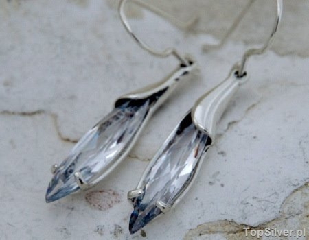 CLOVER – srebrne długie kolczyki z cyrkoniami