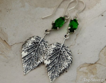 LISTKI BRZOZY – srebrne kolczyki ze szmaragdem
