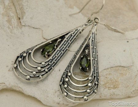OLIVIA – srebrne długie kolczyki z oliwinami