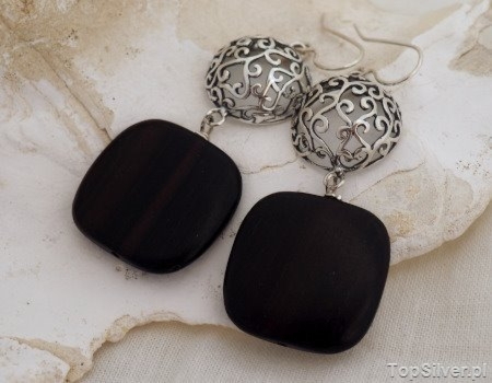 AMATA – srebrny pierścień onyksy, perły i bursztyny