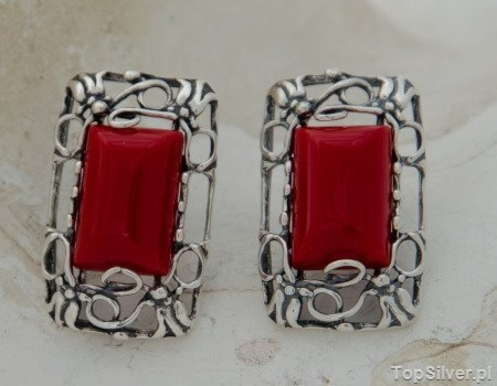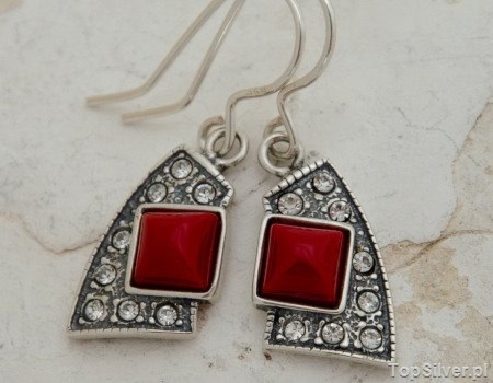 MORONI – srebrne kolczyki z koralem i kryształkami