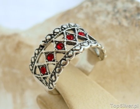 GATA – srebrny pierścionek obrączka z rubinami