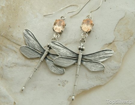 DRAGON – srebrne kolczyki smok z kryształem