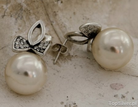 PAWIA – srebrne kolczyki z perłami i kryształkami