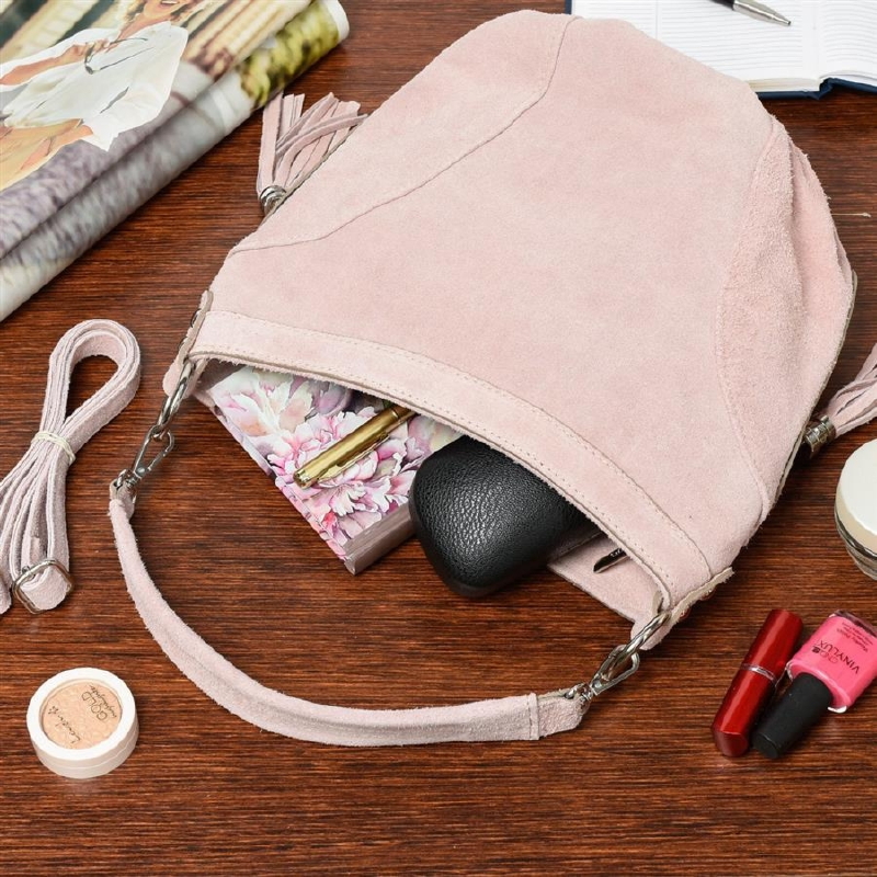 Worek skórzany VERA PELLE pudrowy róż X39