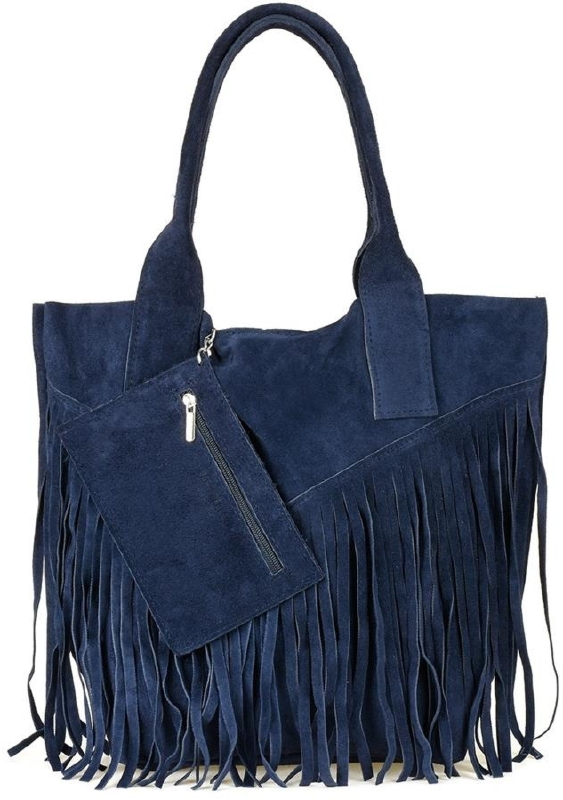 Shopperka boho skórzana VERA PELLE L83 granatowa