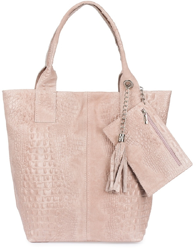 Shopperka skórzana VERA PELLE L94 pudrowa różowa