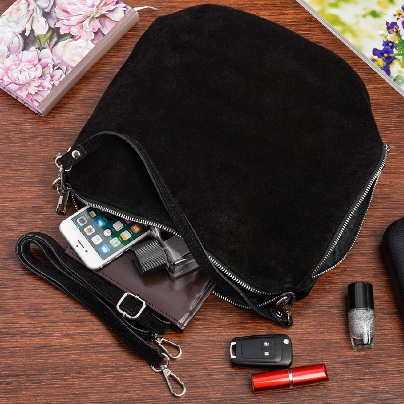 Shopperka boho skórzana VERA PELLE L83 czarna